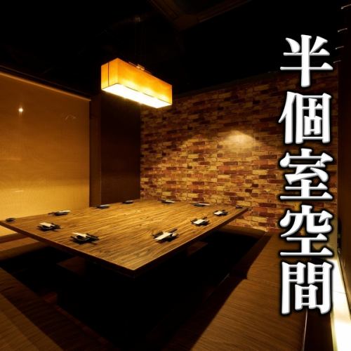 ●半私人房間●半私人房間,配有以黑色主題設計的下沉式被爐桌,可讓您放鬆身心。可依使用人數以捲簾隔開房間,可容納2至12人。